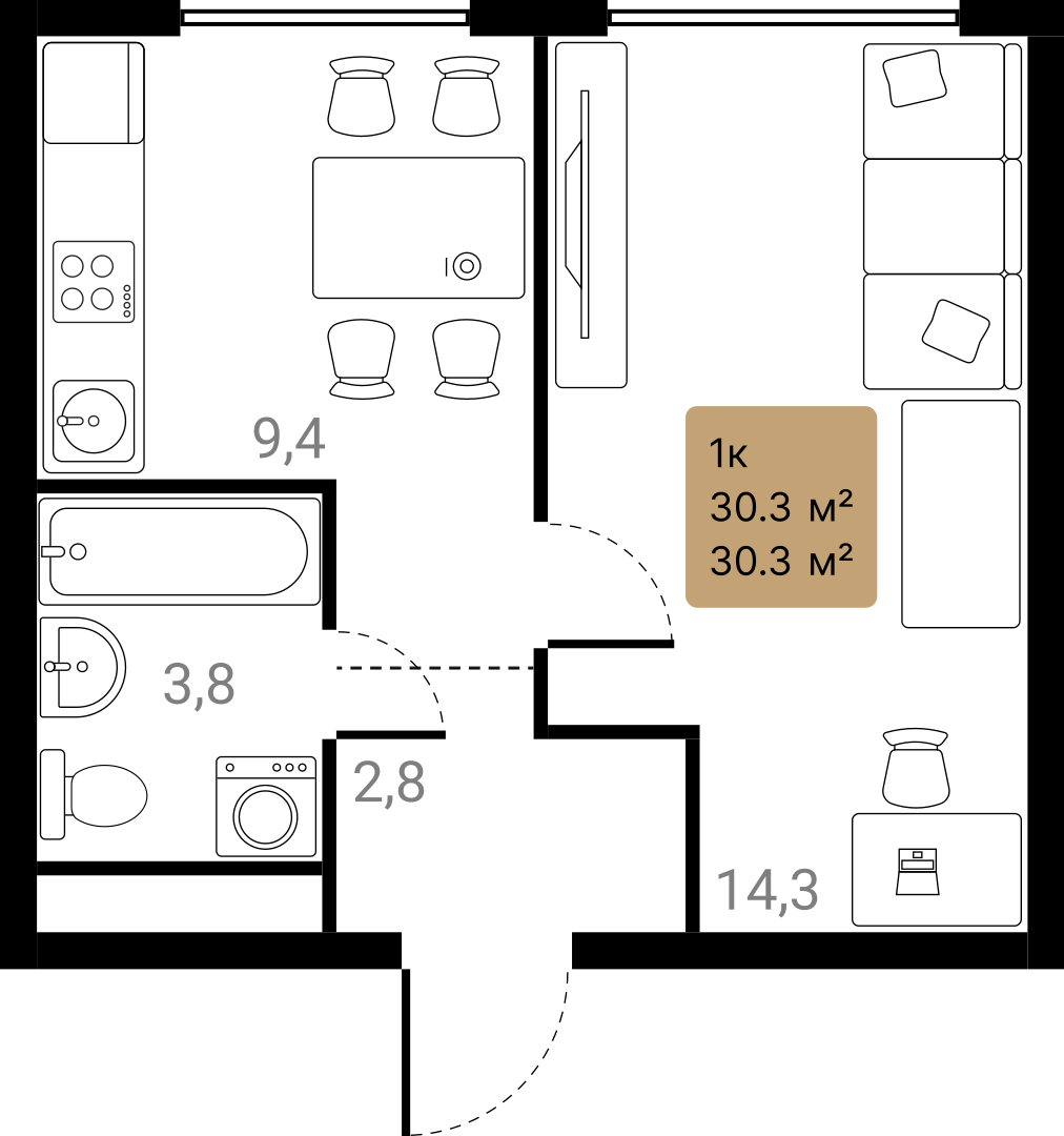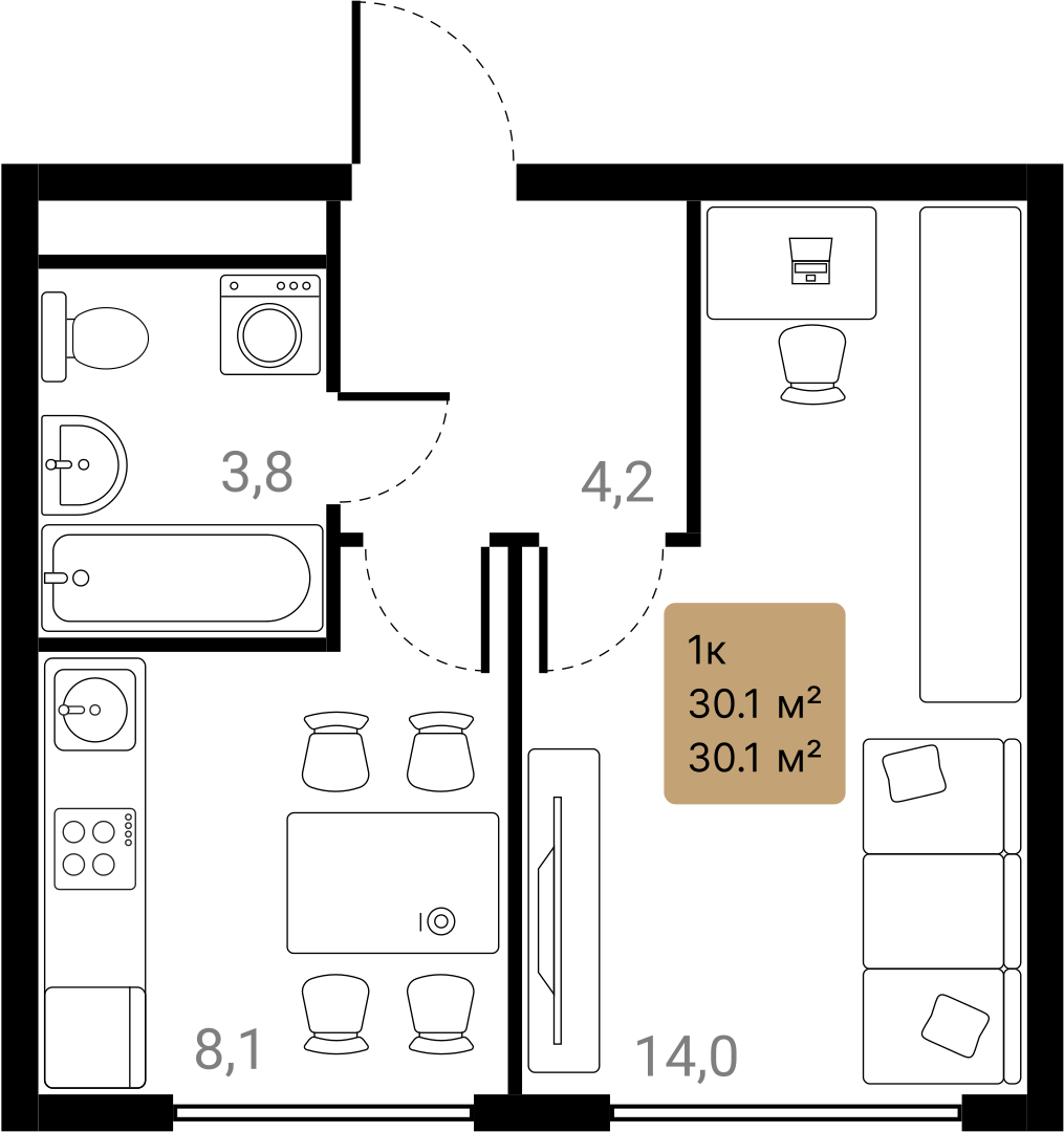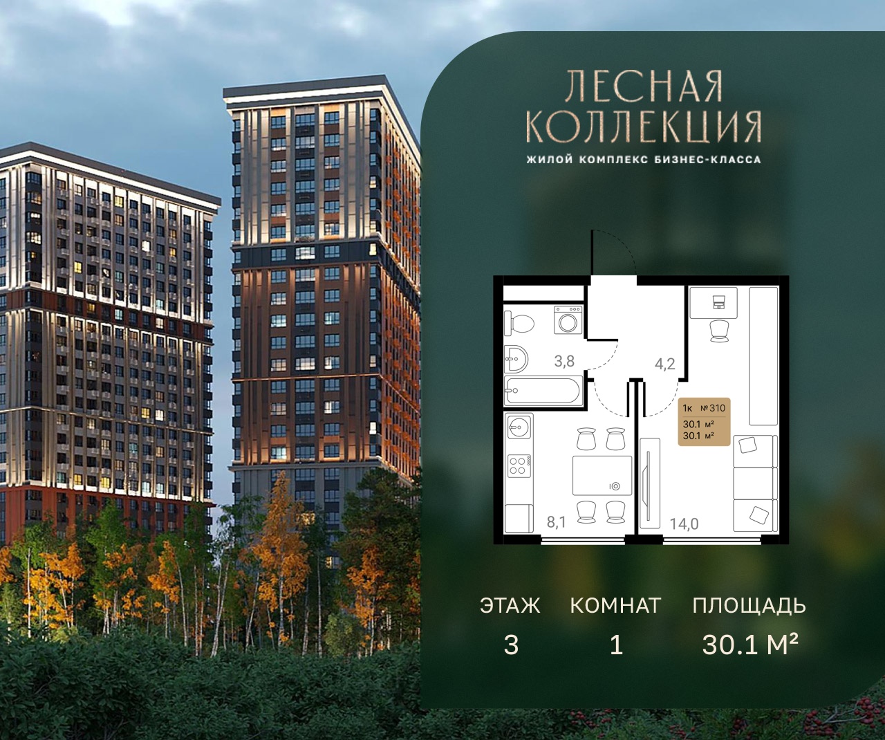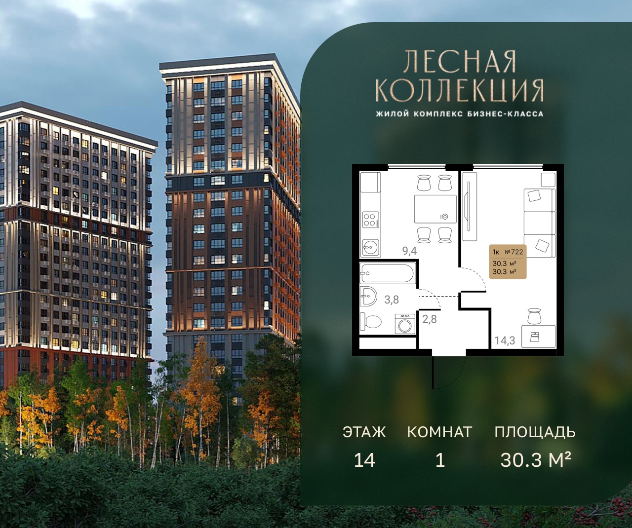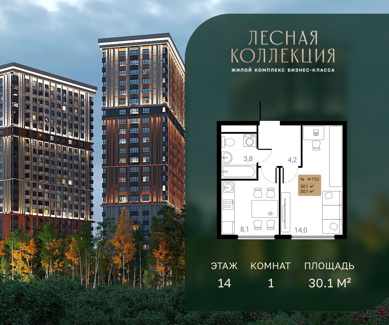 1-комн · 30 м² · 14 эт.
