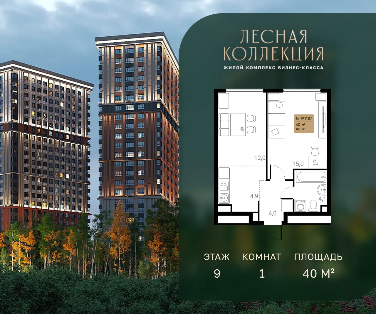 1-комн · 40 м² · 9 эт.