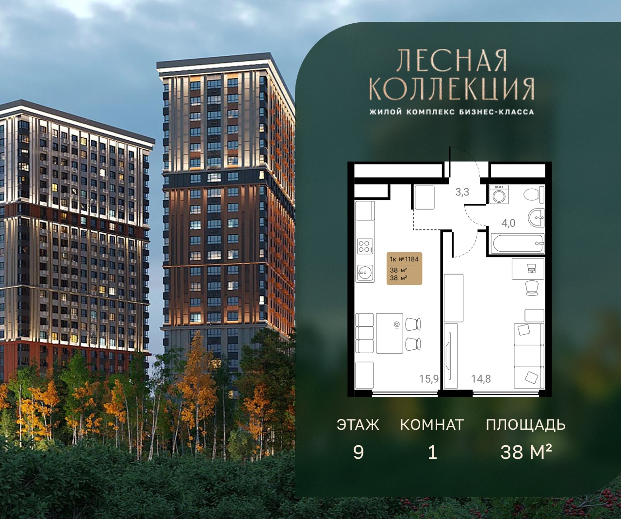 1-комн · 38 м² · 9 эт.