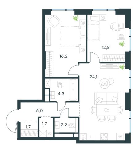 2-комн · 69 м² · 24 эт.
