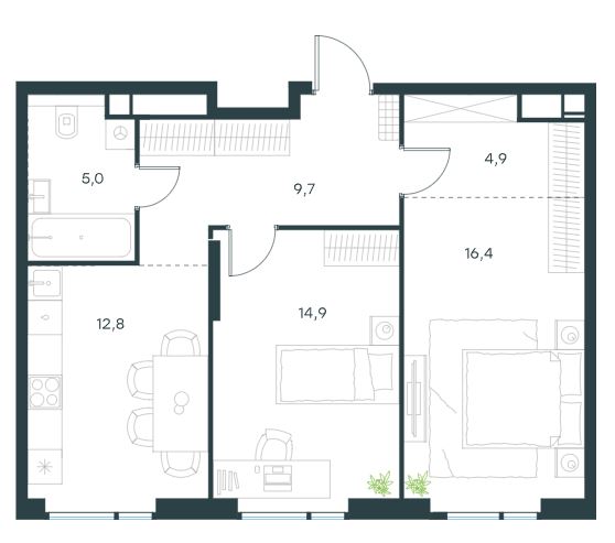 2-комн · 64 м² · 15 эт.