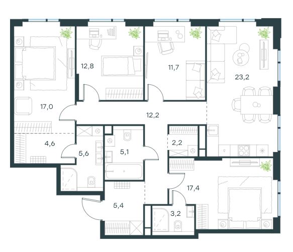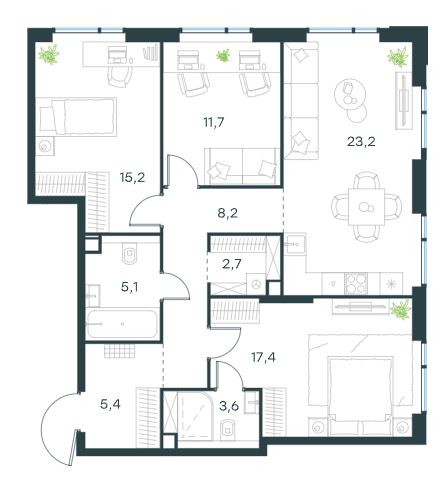 4-комн · 120 м² · 18 эт.