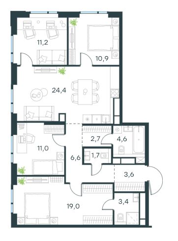 4-комн · 99 м² · 19 эт.