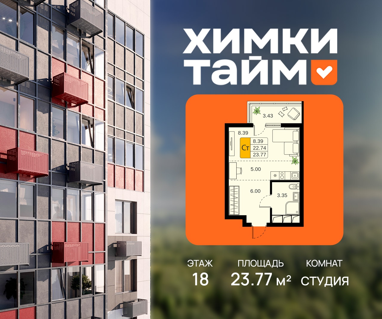 Студия · 24 м² · 18 эт.