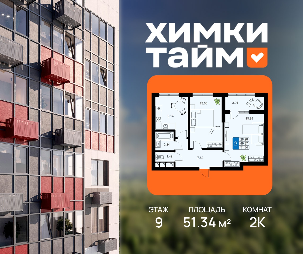2-комн · 51 м² · 9 эт.