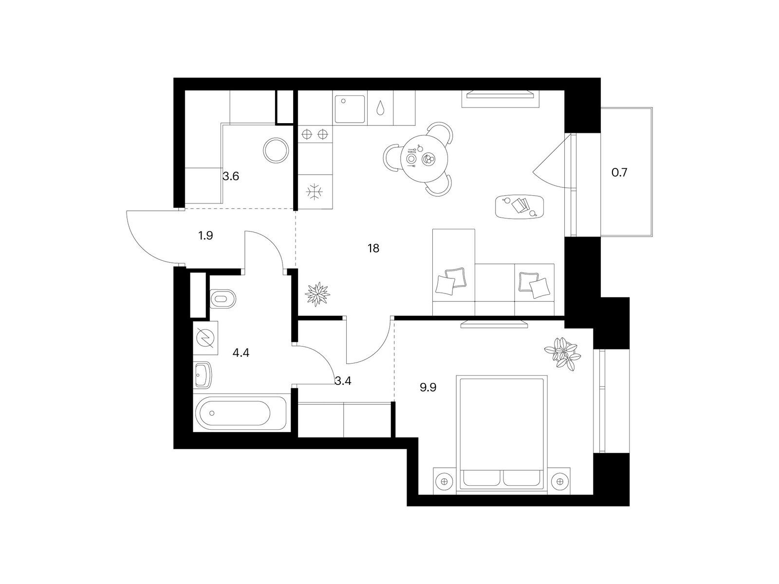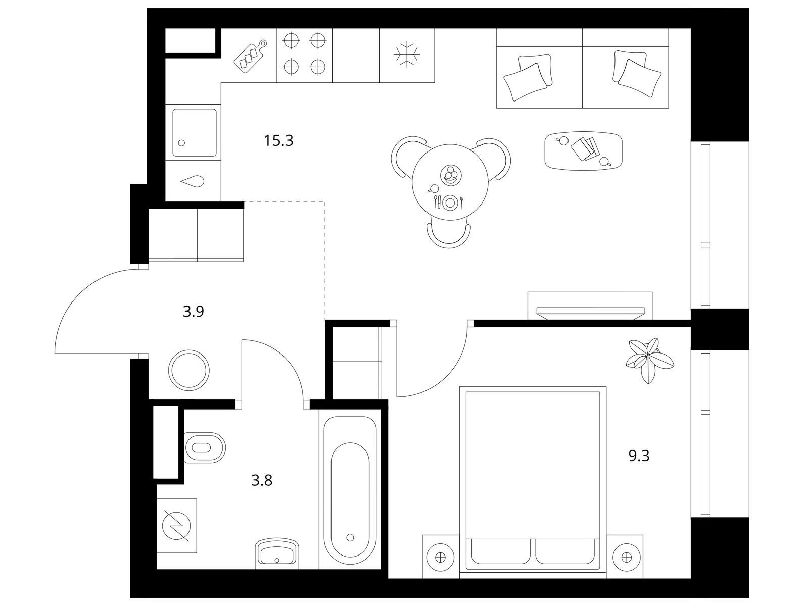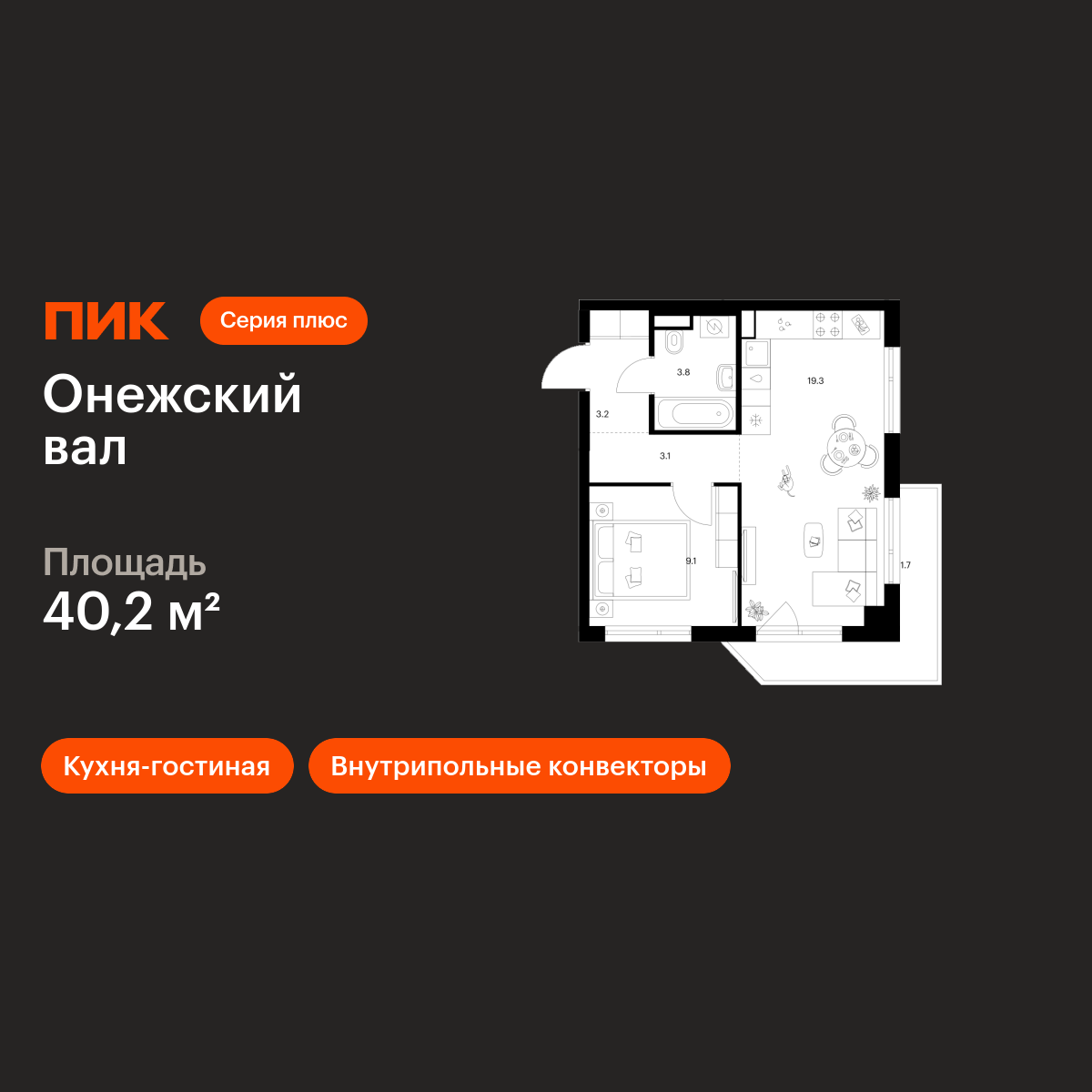 1-комн · 39 м² · 9 эт.