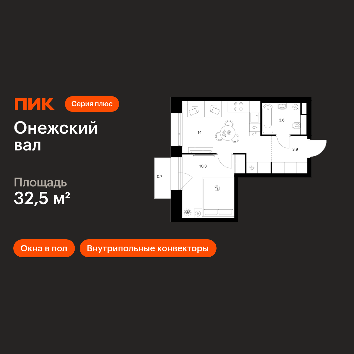 1-комн · 32 м² · 18 эт.