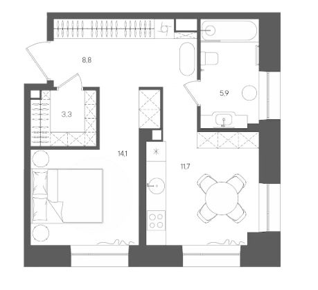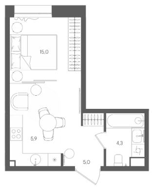 Студия · 33 м² · 22/28