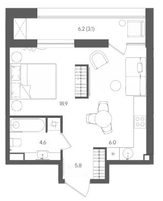 Студия · 30 м² · 6/28