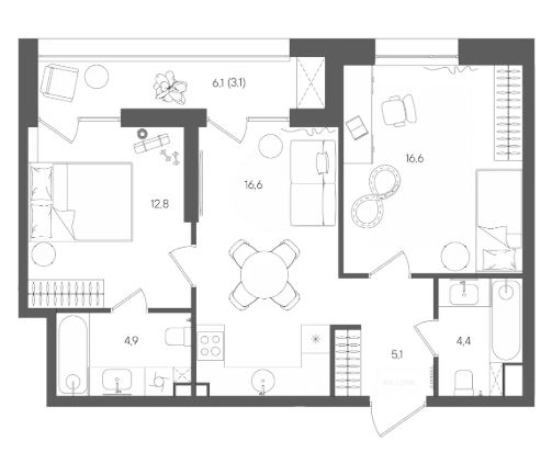 2-комн · 64 м² · 2/28
