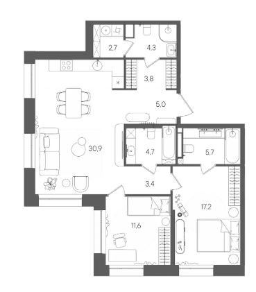 3-комн · 97 м² · 11/28