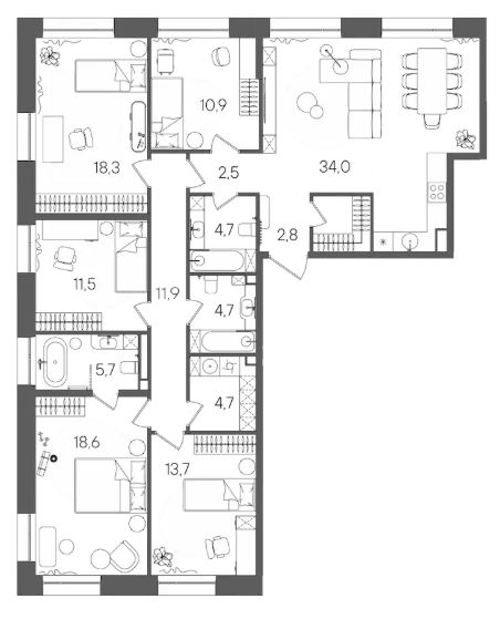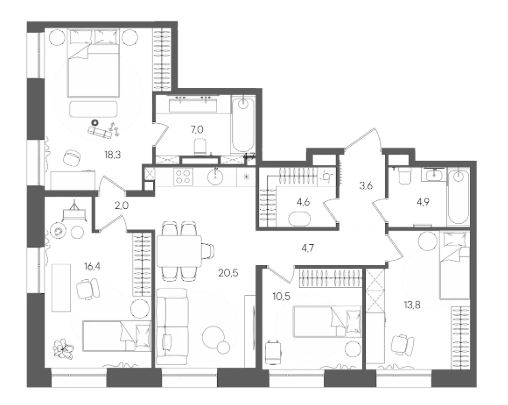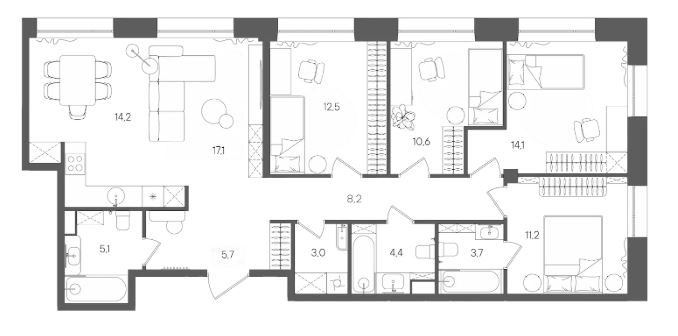 4-комн · 106 м² · 11/28