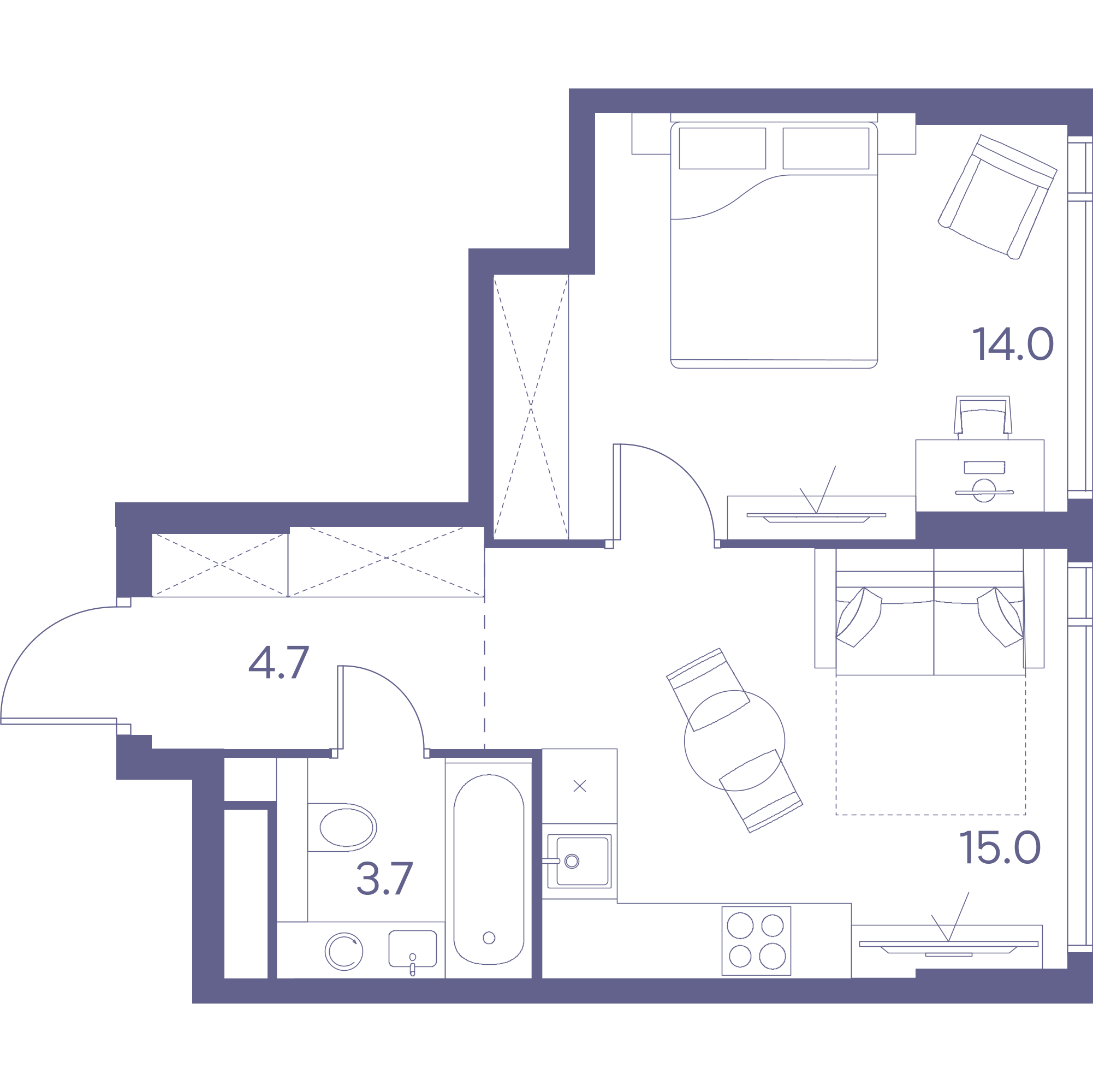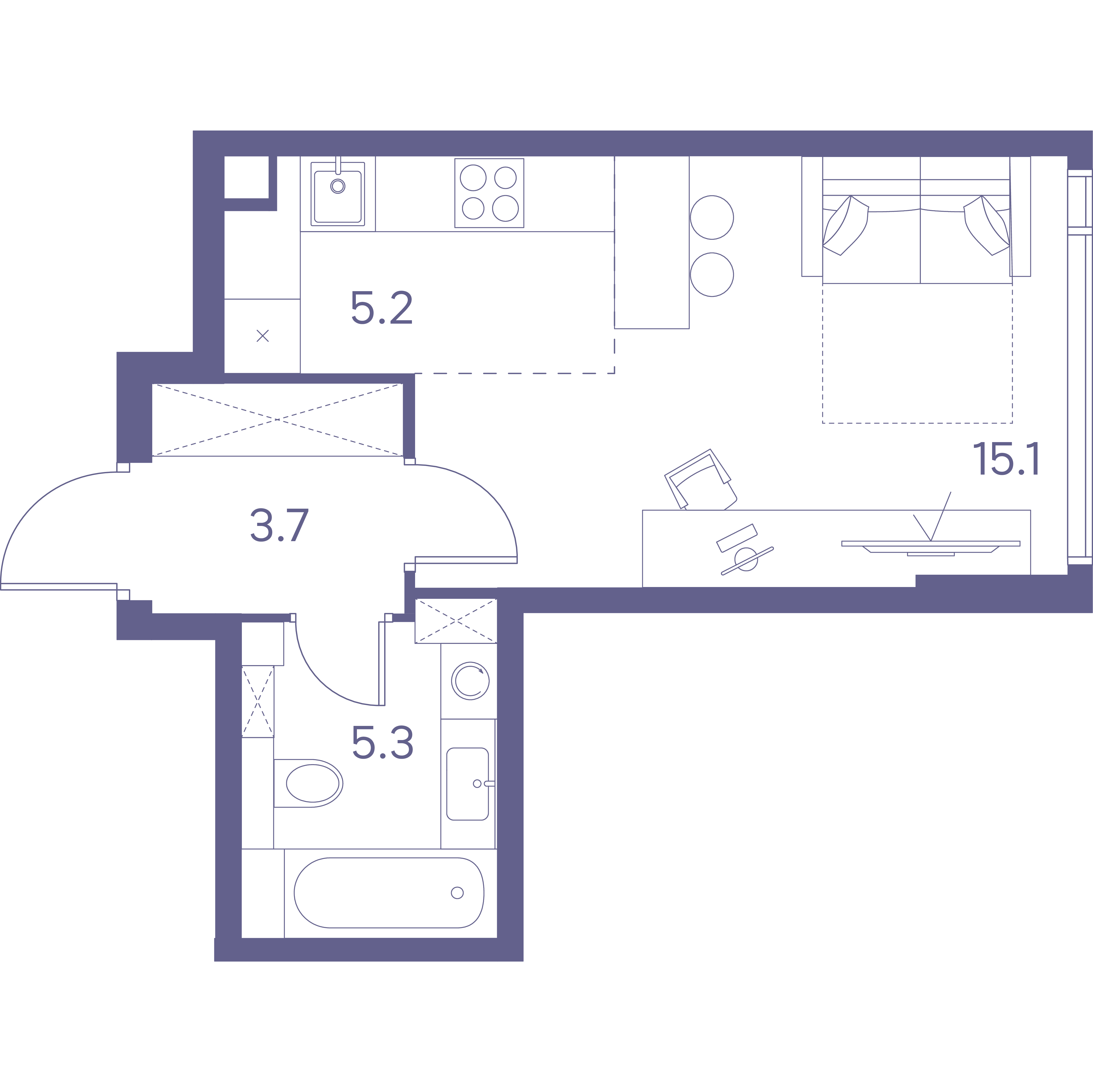 1-комн · 37 м² · 26 эт.