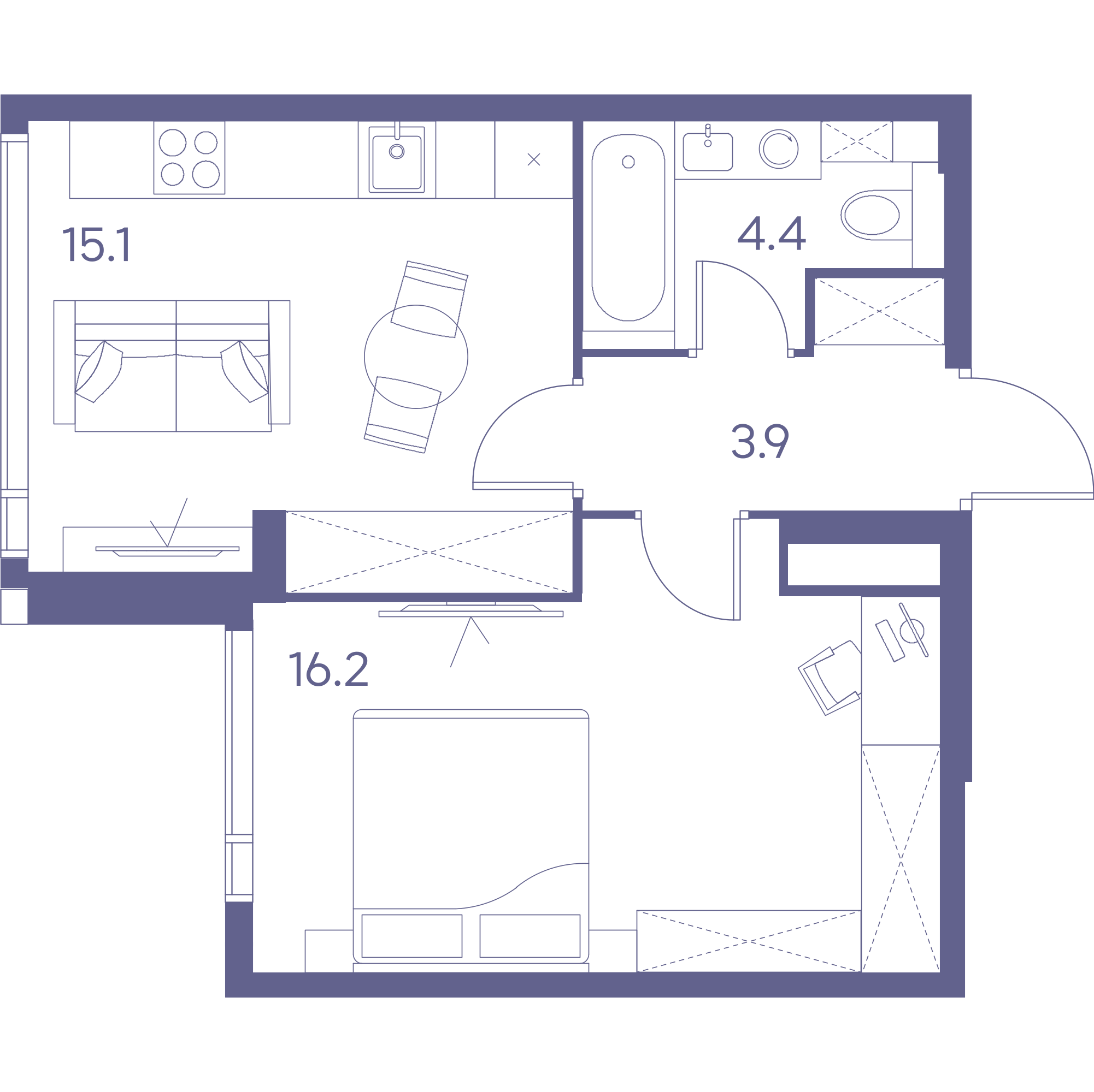 1-комн · 45 м² · 38 эт.
