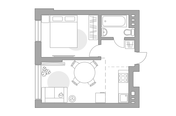 Минимальная площадь: 35,8 м² Максимальная площадь: 42,5 м²