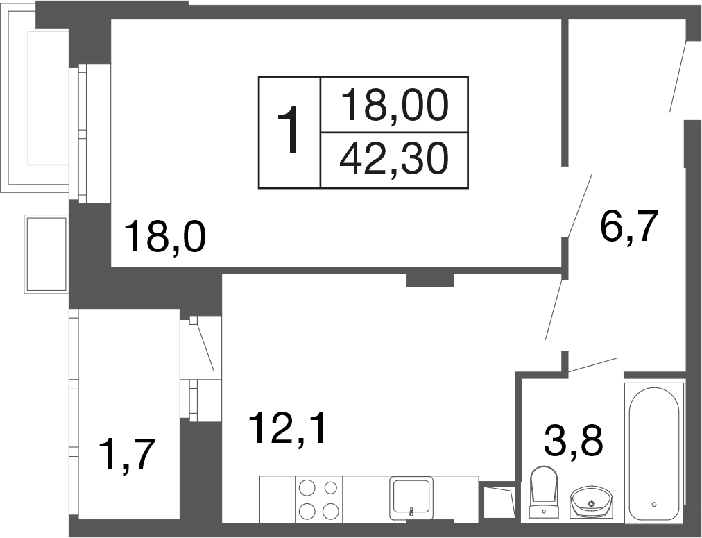1-комн · 42 м² · 1 эт.