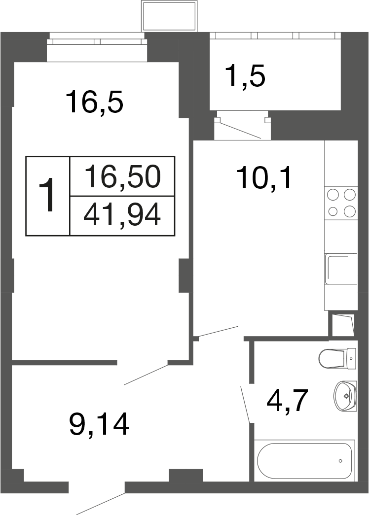 1-комн · 41 м² · 9 эт.