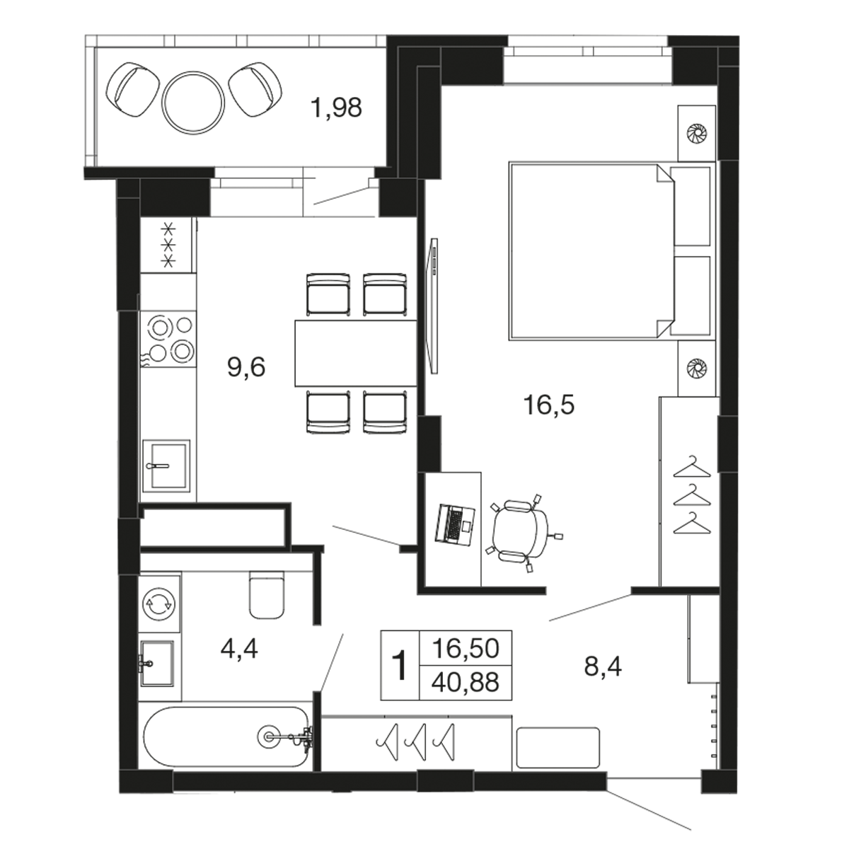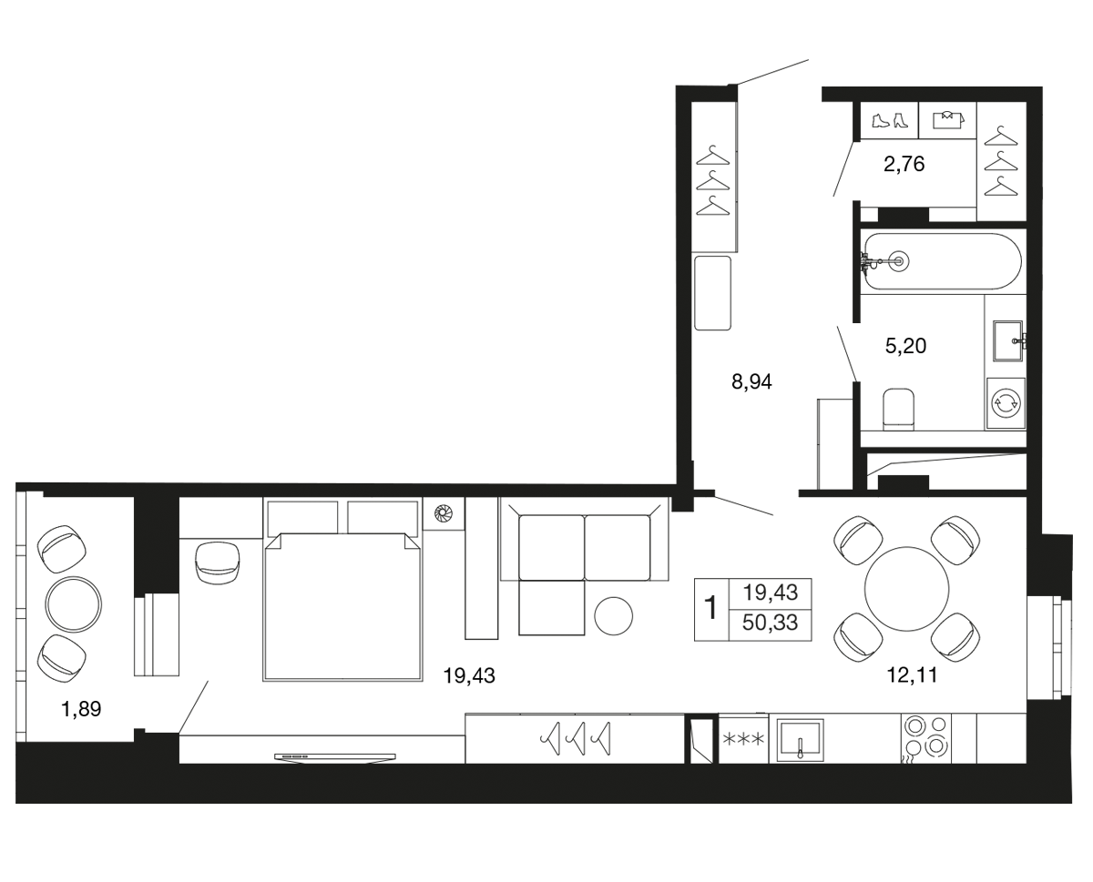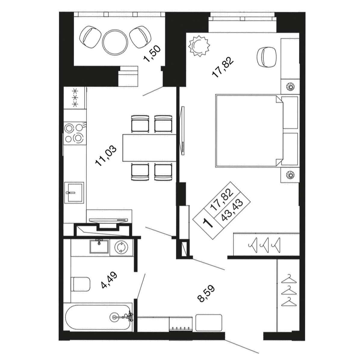 1-комн · 43 м² · 9 эт.