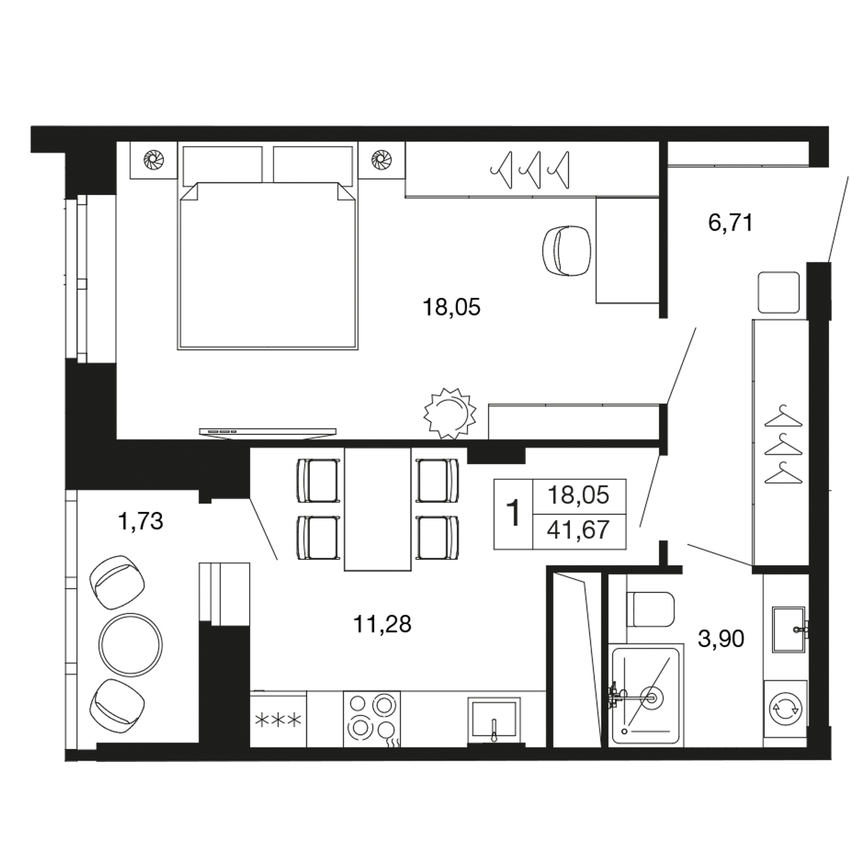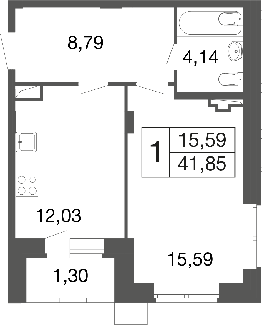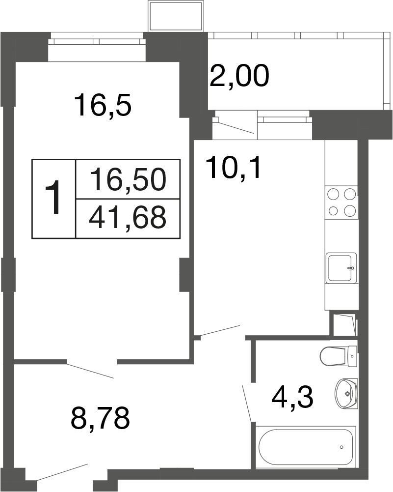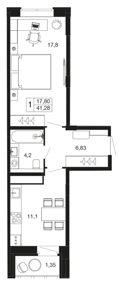 1-комн · 41 м² · 6 эт.