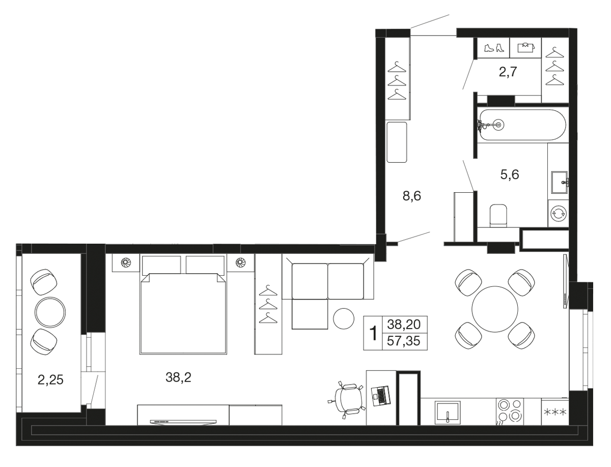 Студия · 57 м² · 2 эт.