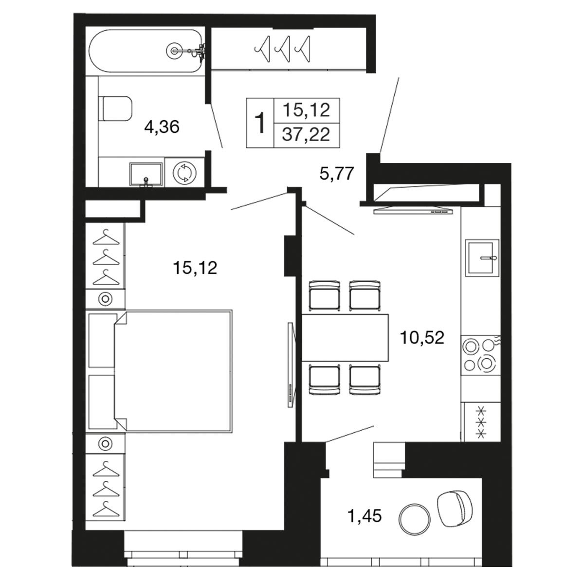 1-комн · 37 м² · 4 эт.