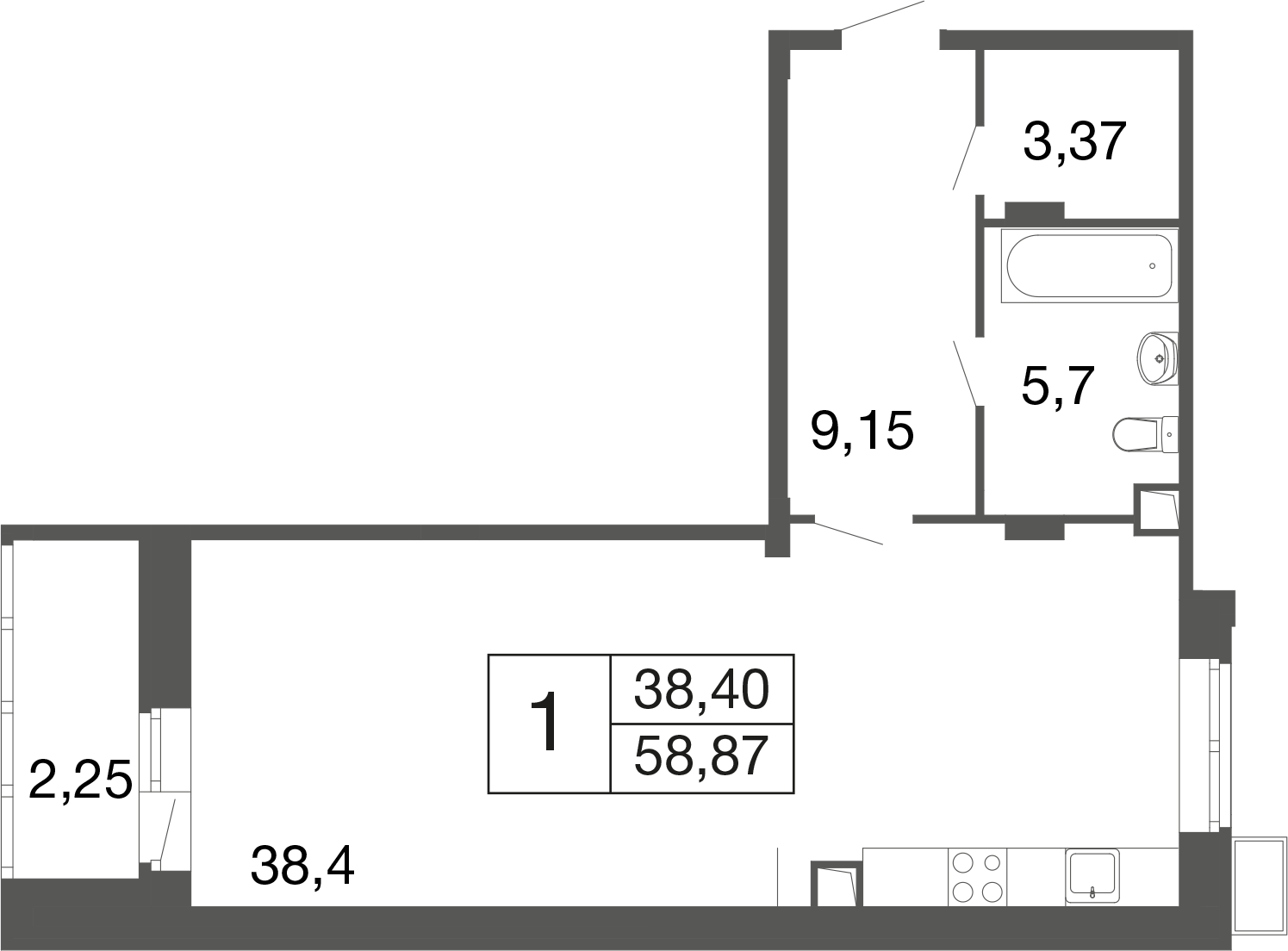 Студия · 58 м² · 8 эт.