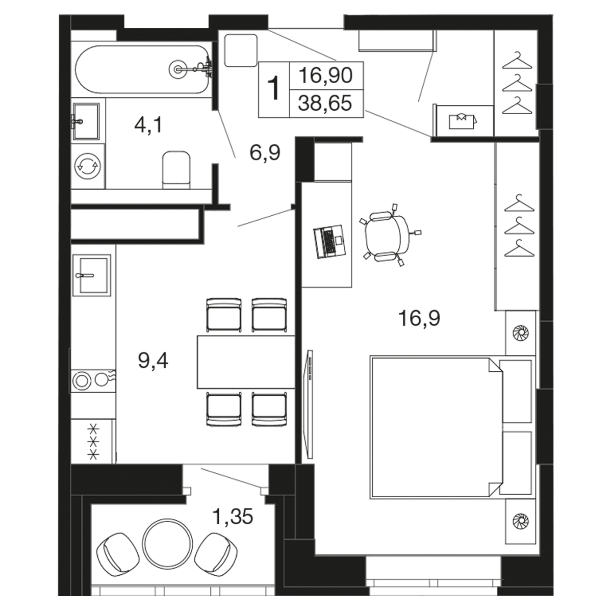 1-комн · 39 м² · 4 эт.
