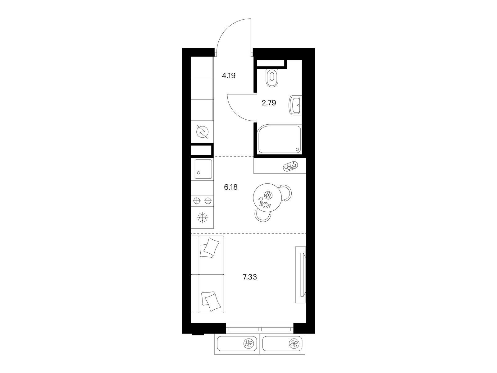 Студия · 19 м² · 2 эт.