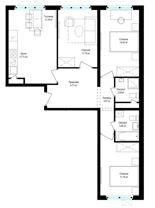 3-комн · 81 м² · 17 эт.