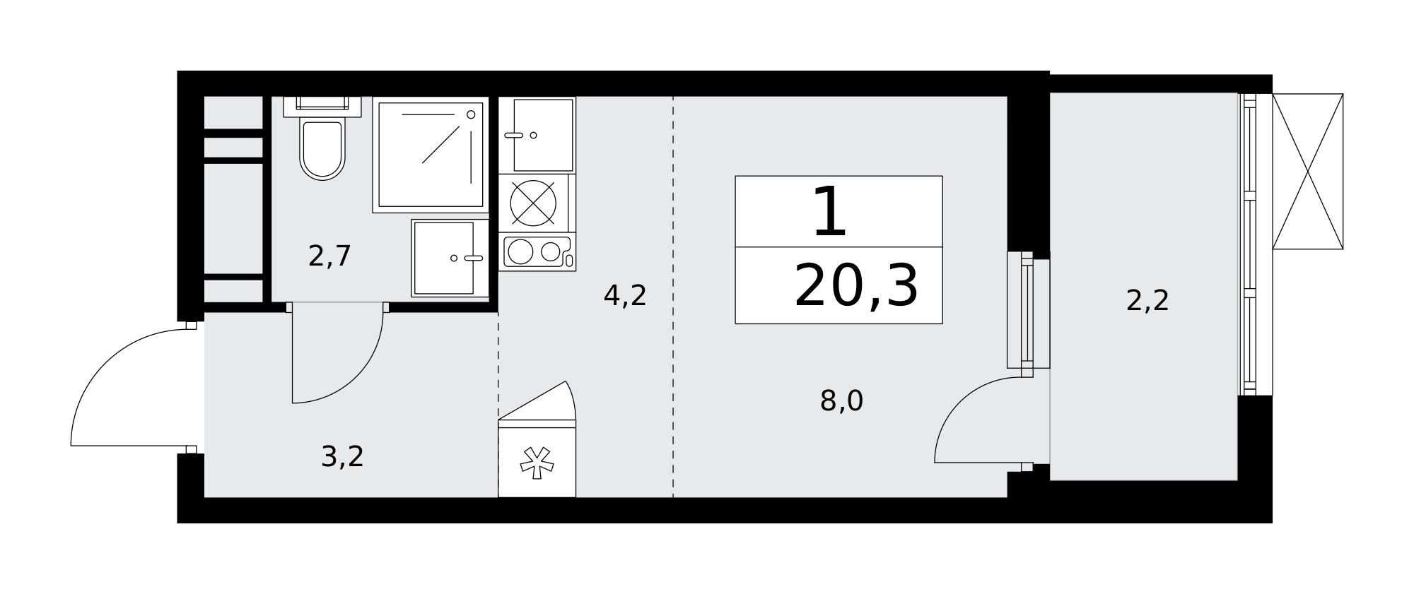 1-комн · 20 м² · 8 эт.