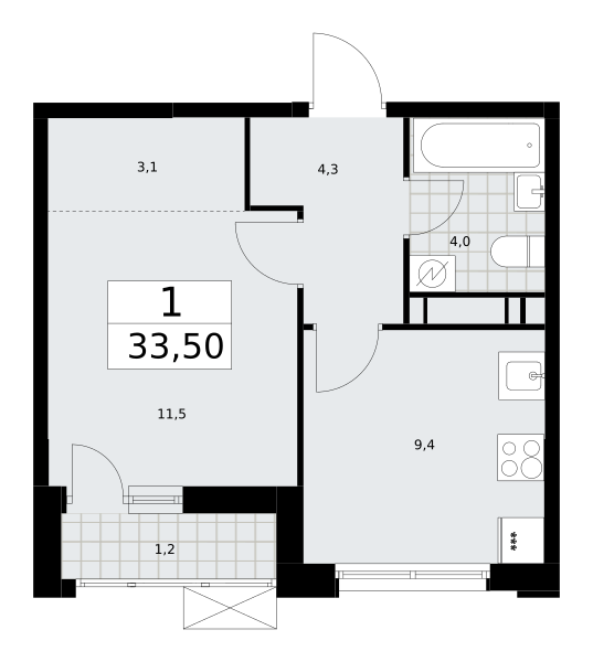 1-комн · 33 м² · 11 эт.